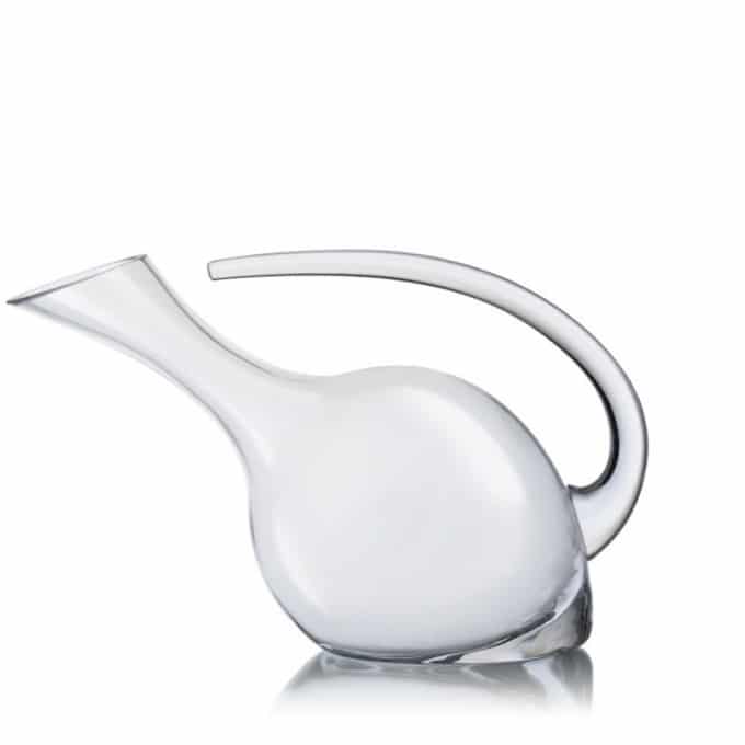 Horizontal and interesting carafe for wine. The decanter has a beveled neck and handle that makes pouring the wine stable and easier. It is handmade by the traditional methods of the Czech glassmakers. It is beautiful to look at and practical for its purpose