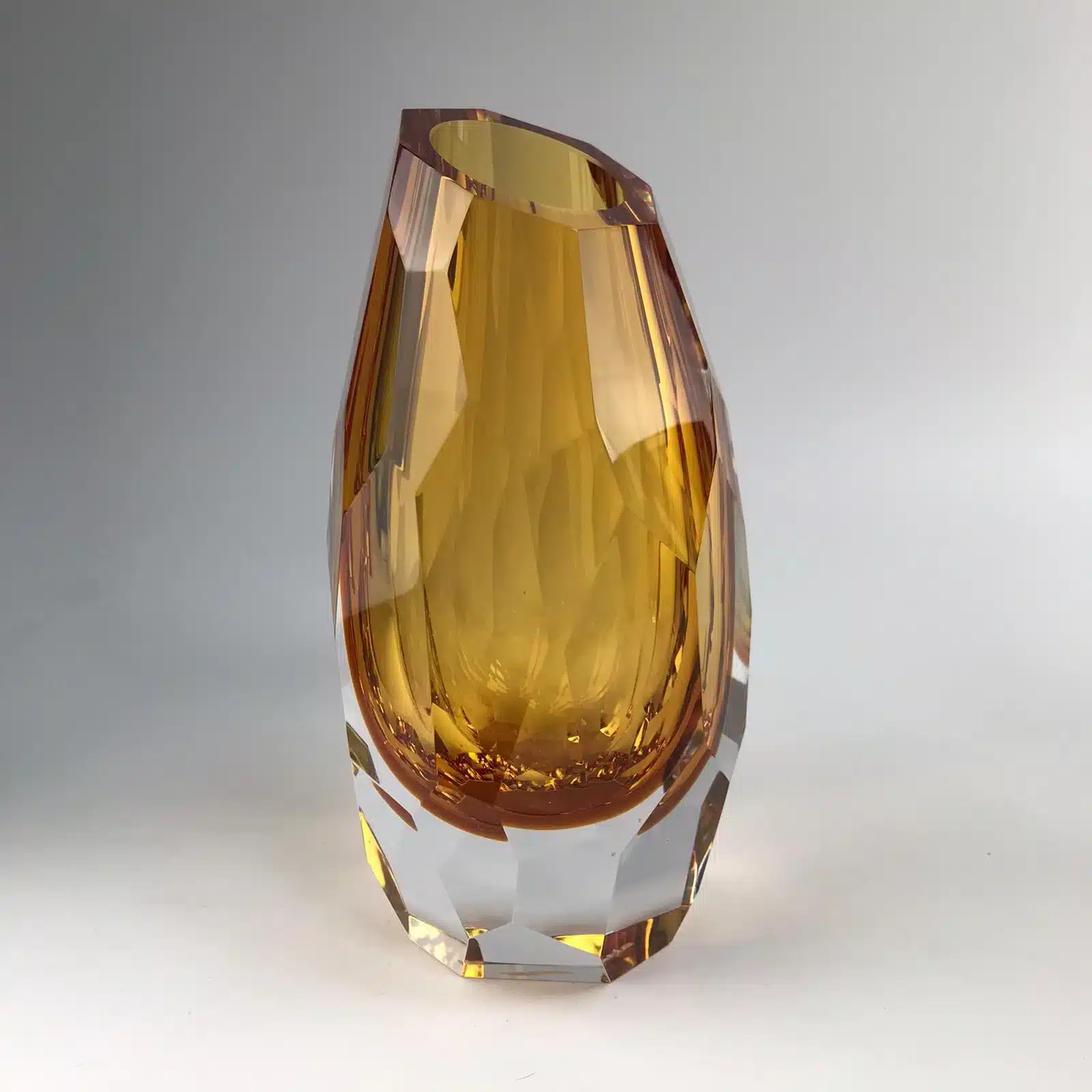 Dozens of cut edges together with crystal or colored glass create unique vases called NAOMI