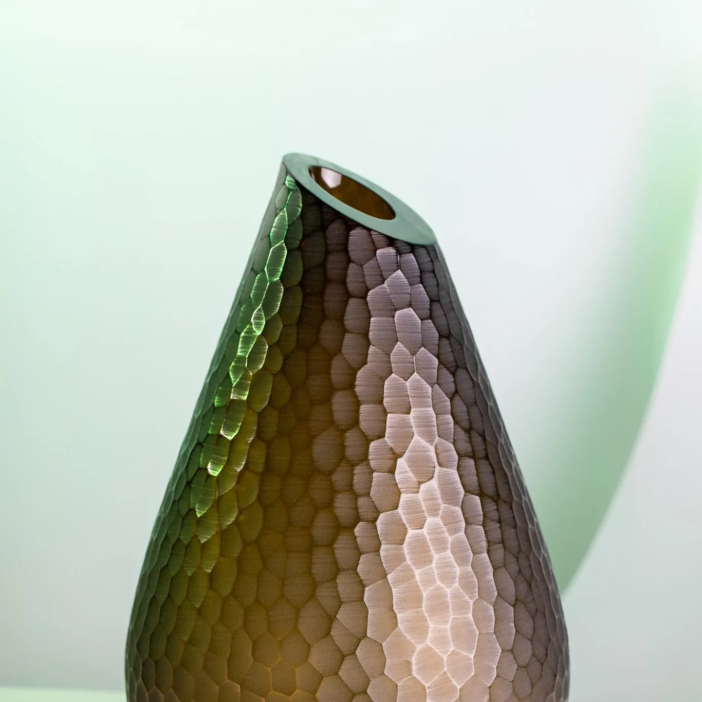 SNAKESKIN vase is a handcrafted piece made from Czech crystal, shaped using traditional glassblowing into a wooden mold, making each piece unique.